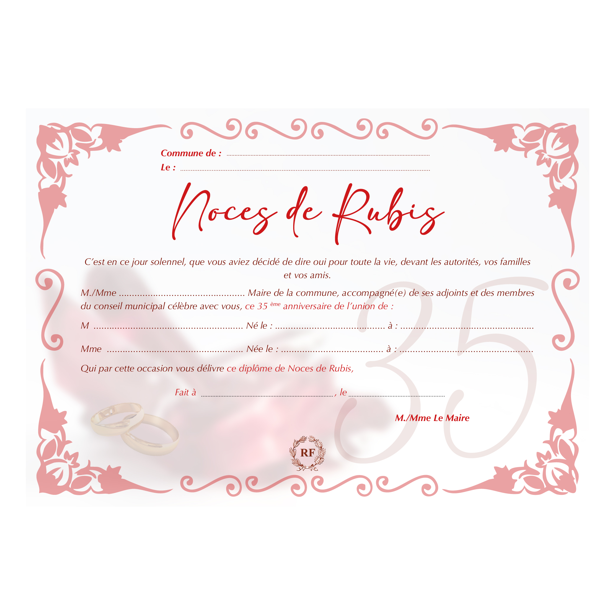 DIPLÔME DE NOCES PERSONNALISABLE